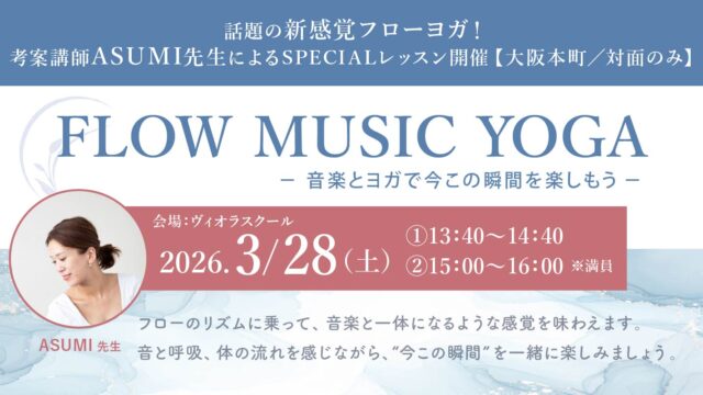 ワークショップ 【枠追加】2026年3月28日(土)開催!話題の新感覚フローヨガ!考案講師ASUMI先生によるSPECIALレッスン「FLOW MUSIC YOGA-音楽とヨガで今この瞬間を楽しもう-」【対面】 ヨガヴィオラトリコロール https://www.yoga-viola.com/wpblog/wp-content/uploads/2023/11/logo.png viola tricolor ws