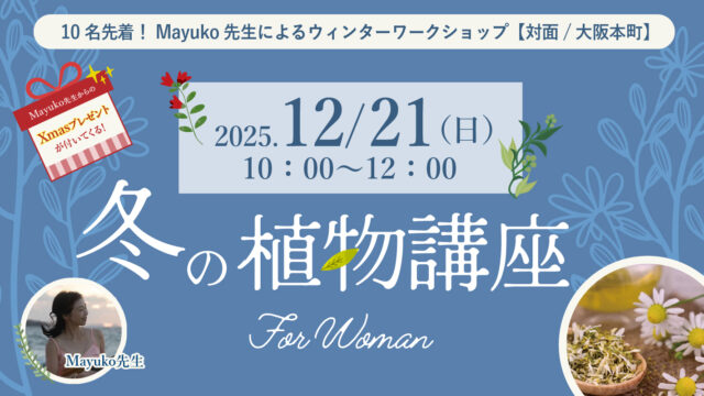 ワークショップ 2025年12月21日(日)開催!10名先着!Mayuko先生によるウィンターワークショップ『冬の植物講座for Woman』 【対面/大阪本町】 ヨガヴィオラトリコロール https://www.yoga-viola.com/wpblog/wp-content/uploads/2023/11/logo.png viola tricolor ws