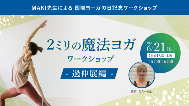 ワークショップ 2026年6月21日(日)開催 MAKI先生による国際ヨーガの日記念ワークショップ『2ミリの魔法ヨガWS - 過伸展編 -』【対面】 ヨガヴィオラトリコロール https://www.yoga-viola.com/wpblog/wp-content/uploads/2023/11/logo.png viola tricolor ws