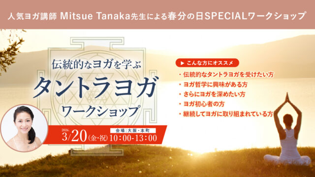 ワークショップ 2026年3月20日(金祝)開催!人気ヨガ講師Mitsue Tanaka先生による春分の日SPECIALワークショップ『伝統的なヨガを学ぶ タントラヨガWS』 【対面/大阪本町】 ヨガヴィオラトリコロール https://www.yoga-viola.com/wpblog/wp-content/uploads/2023/11/logo.png viola tricolor ws