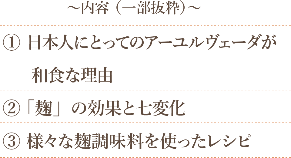 こうした日本の食文化は、アーユルヴェーダの考え方と自然につながっています。