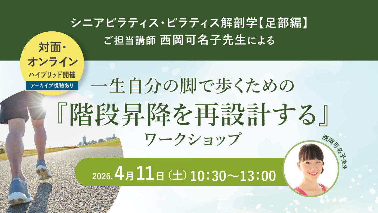 『一生自分の脚で歩く』『日常生活を快適に過ごす』をテーマに、シニアピラティスや機能改善指導を行っています。その中で、歩行やレッスン中は問題がないのに、階段昇降で膝や股関節に違和感が出るというケースを多く見かけます。