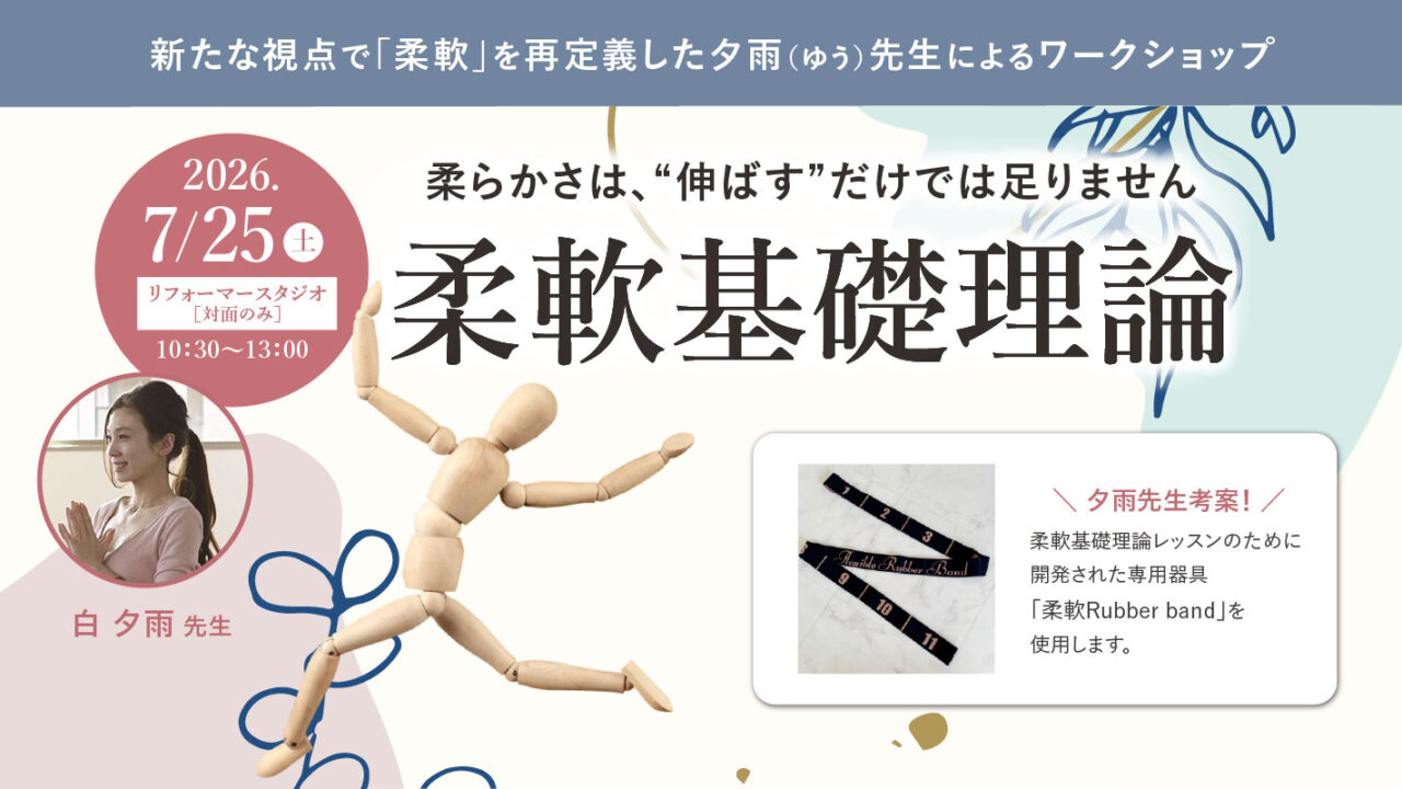 本ワークショップでは、身体を一つの“物体”としてではなく、「空間の中でバランスを取り続けている存在」として捉える視点から、身体の変化や柔軟性について見直していきます。