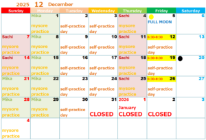 明日、12/1より1ヶ月自主練マイソールパス(¥10,000)の販売が始まります。