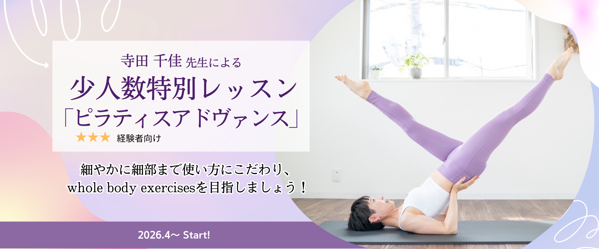 2026年4月4日(土)開催 FTPマスタートレーナー菊川由美子先生によるワークショップ『マットピラティスを分解して考える 〜準備エクササイズから完成系へ〜』【対面】